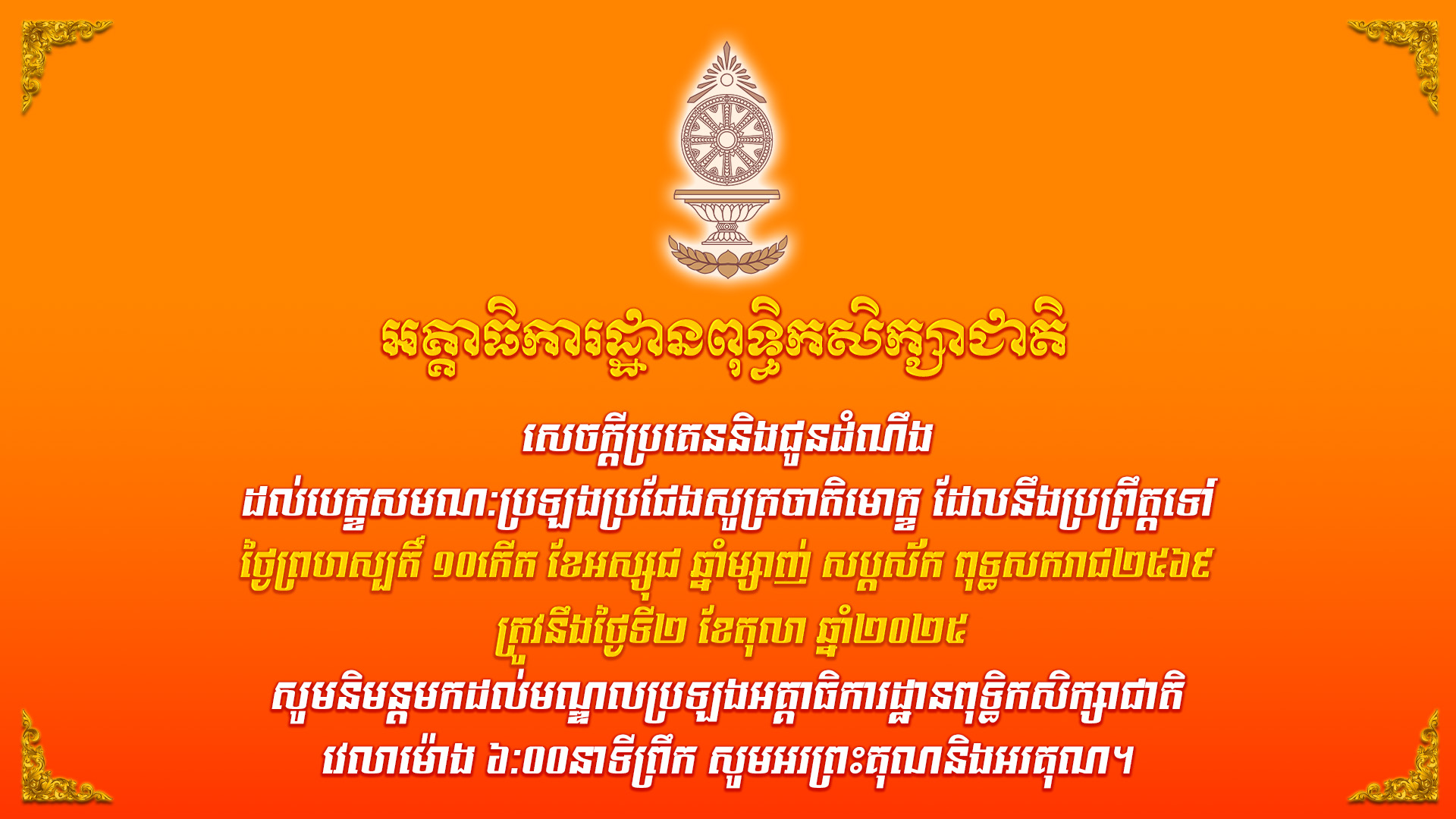 សូមប្រគេន-ជូន ប្រកាសស្តីពីការរៀបចំនិងការប្រព្រឹត្តិទៅ នៃប្រឡងវិញ្ញាបនបត្រពុទ្ធិកបឋមសិក្សា សម្រាប់ឆ្នាំសិក្សា២០២៥-២០២៦