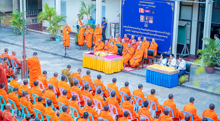 ឯកឧត្តម ចាយ បូរិន រដ្ឋមន្ត្រីក្រសួងធម្មការនិងសាសនា និងសម្តេចព្រះមហាសុមេធាធិបតី កិត្តិបណ្ឌិត អំ លីមហេង ព្រះអគ្គាធិការនៃអគ្គាធិការដ្ឋានពុទ្ធិកសិក្សាជាតិ